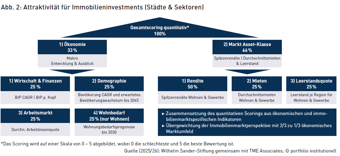 • Liquidität: Veräußerbarkeit und Marktgängigkeit einzelner Objekte oder Teilportfolios (Marktwerte, strategische Exit-Optionen),